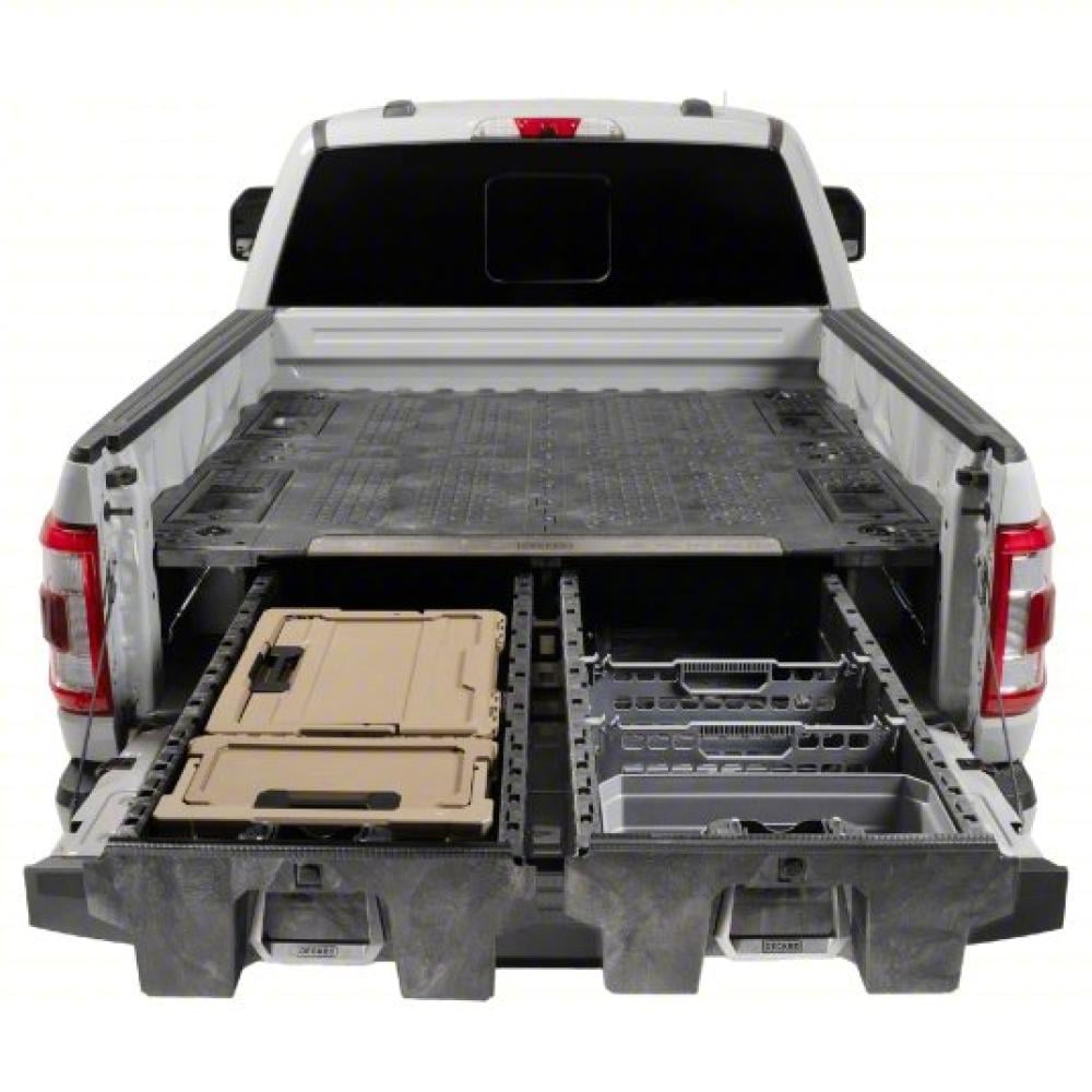تخزين ضخم - توفر الأدراج بطول الحوض الكامل والممرات الجانبية للوصول إلى العجلات مساحة تخزين ضخمة وقابلة للتخصيص. مساحة مهدرة تقريبًا صفر. زيادة بنسبة 100% بالضبط في فائدة حوض شاحنتك. تمتد الأدراج القياسية كاملة الحجم بمقدار 12 بوصة إضافية وتمتد الأدراج القصيرة كاملة الحجم بمقدار 1 بوصة أخرى.