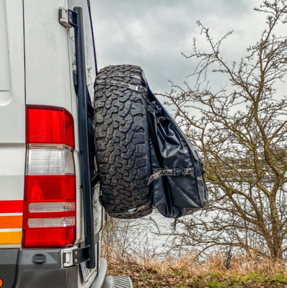 تمتع بحماية قوية وموثوقة لعجلة الاحتياطية الخلفية مع حقيبة العجلة الاحتياطية الكبيرة من ألو كاب. مصنوعة من فينيل متين ومقاوم للطقس الشديد، توفر هذه الحقيبة حماية ضد الغبار والأوساخ والماء وأشعة الشمس. تتميز بنظام إغلاق آمن يتضمن أحزمة قوية وفيلكرو صناعي وثلاثة أبازيم قوية.