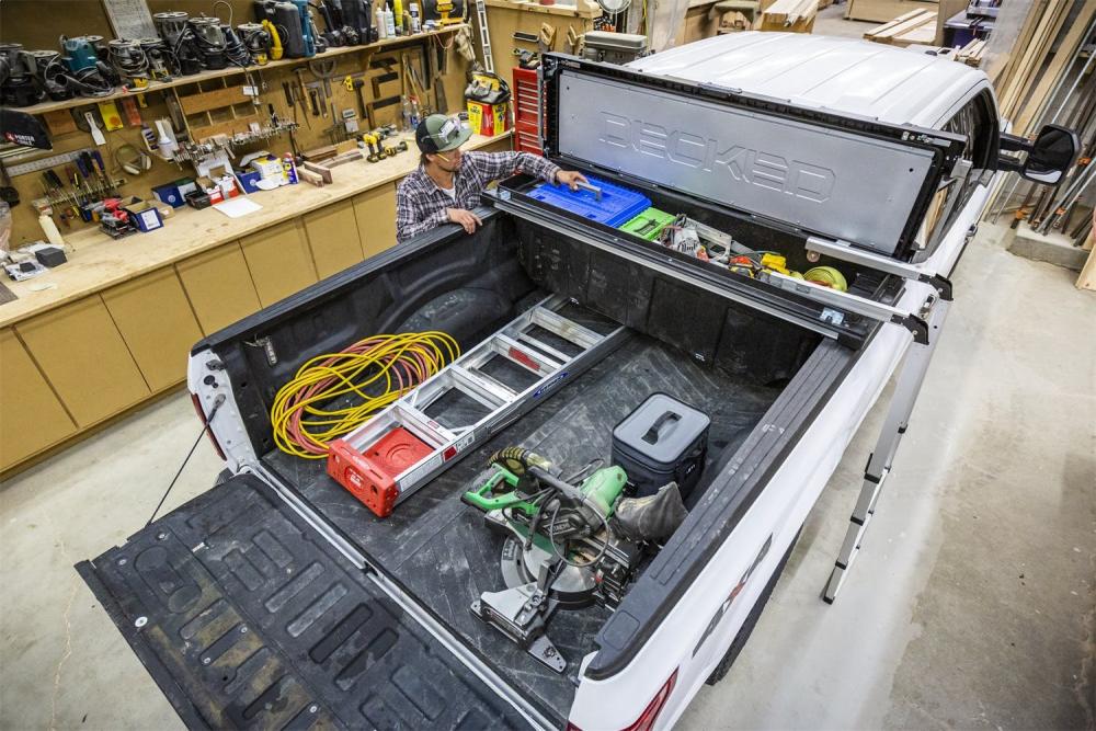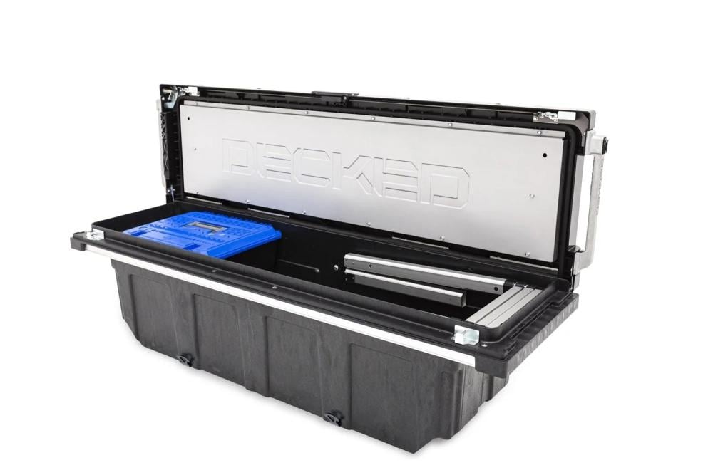 يعد صندوق الأدوات العميق مع سلم من ديكد إضافة مثالية لأي شاحنة، مما يتيح لك تخزين معداتك بأمان وراحة.