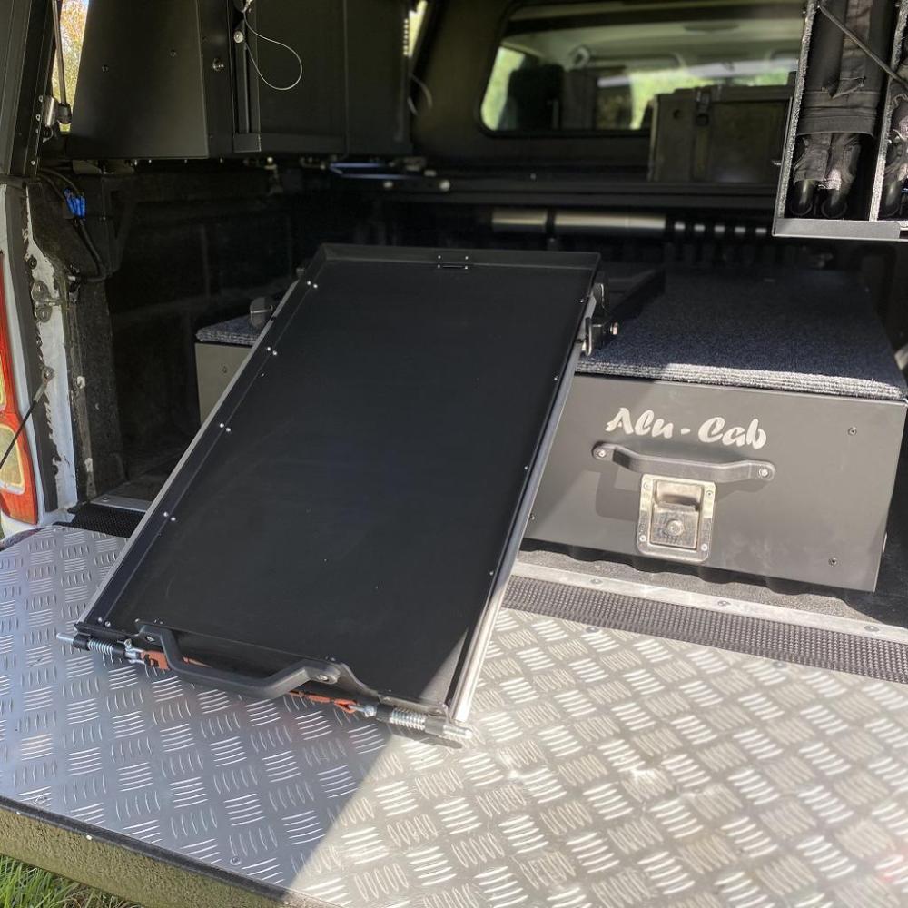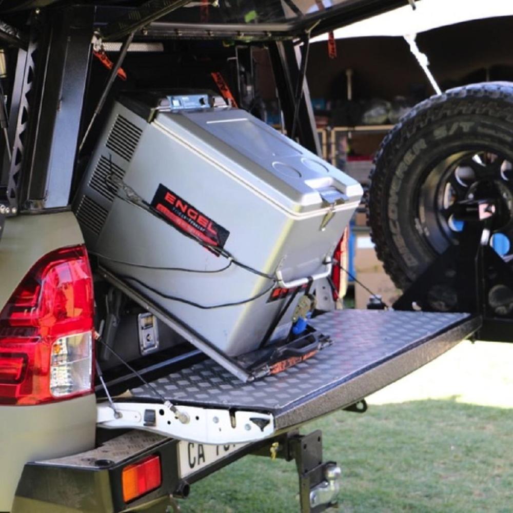The fridge slide allows easier access when the fridge is positioned at height. It also helps to clear thecanopy or back doors when there isn’t space to open the lid. Built from both Stainless Steel and Aluminium, this tilting fridge slide offers good strength without adding excessive weight.